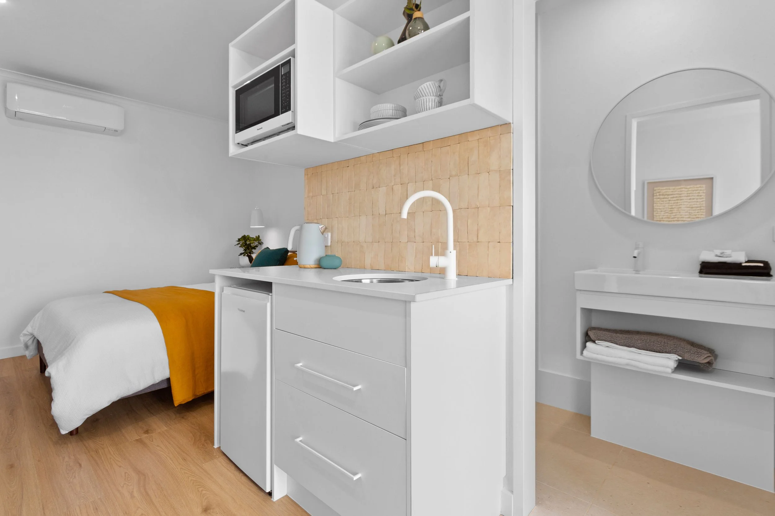 Cobble + Stone offers 4 luxurious units situated on the grounds of Boston House. Each unit contains a queen bed, split system air conditioning, 50 inch flat screen TV, Ensuite and a self sufficient Kitchenette inc. microwave, fridge/freezer, toaster and kettle with complimentary tea & coffee.
